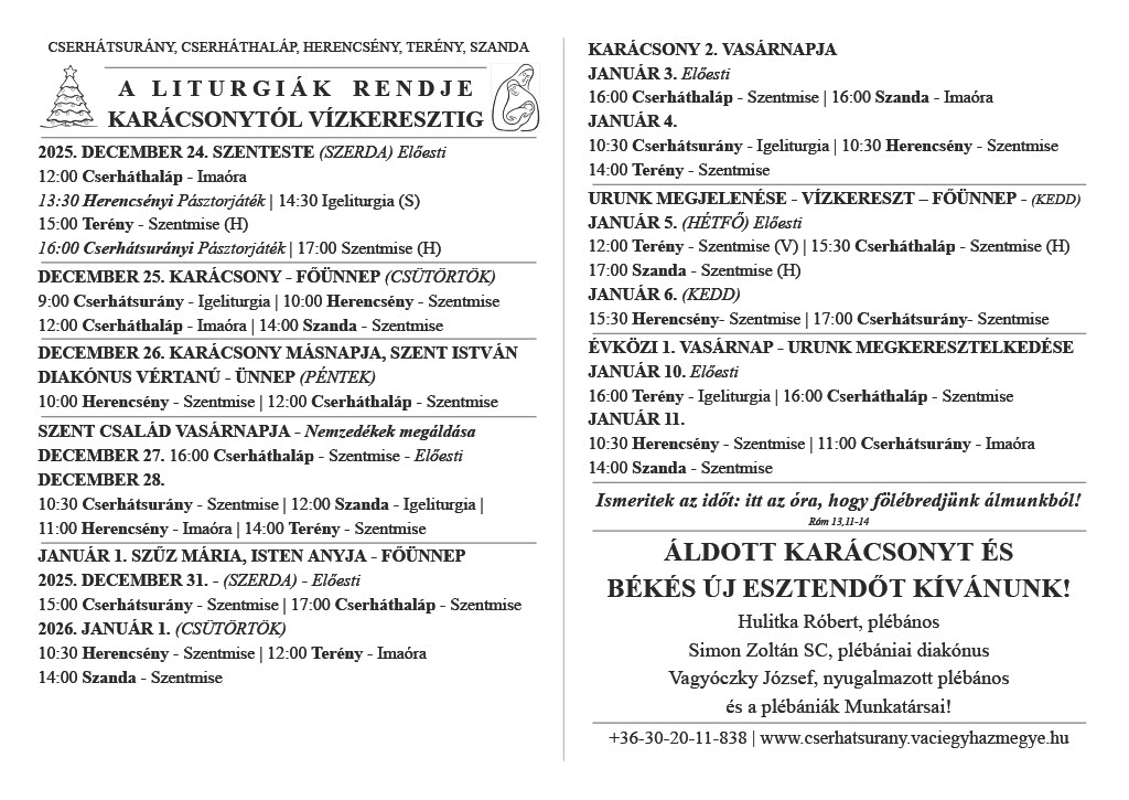 A KARÁCSONYI LITURGIÁK RENDJÉT ITT LEHET OLVASNI!